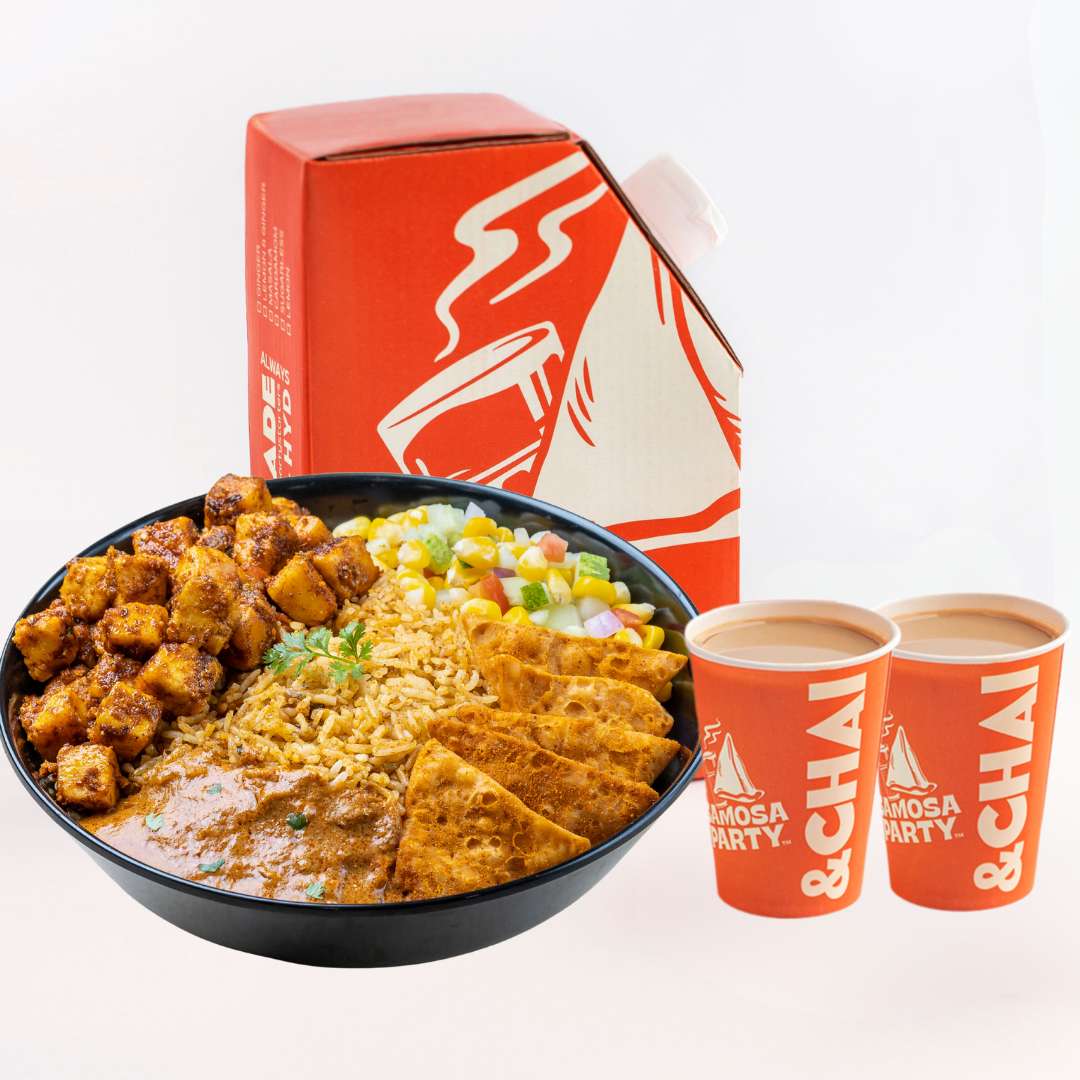 Choose between Punjabi Aloo, Paneer Tikka and make a combo with the Chai Flasks 2 cups